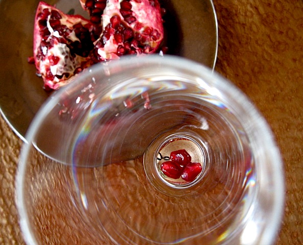 I have to tell you that I have been barely able to contain myself for the past few weeks, eagerly anticipating the moment when I would share this special Winter Solstice cocktail. Yes I know, I am as silly as a little kid – it’s true. But this really is the perfect drink to celebrate the season. Why, why, why – You ask? Well, it’s because this champagne cocktail contains three seeds from the pomegranate, the mythical fruit of Greek legend, explaining the seasons. But before I get into the story, let me tell you the most exciting thing about this drink: when pomegranate seeds are dropped into a glass of champagne and pomegranate liqueur, they become suspended by bubbles rising in the sparkling wine. They float up and down; lifting, dipping and swaying, as if dancing to music. How festive is that? I love watching the ruby red seeds float around like lively party-goers in my champagne flute, and I know you are going to get a kick out of it too. Of course you know this drink deserves center stage at your next holiday party.