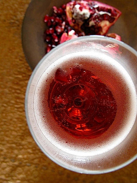 I had a champagne-pomegranate seed cocktail a long time ago, and when I saw it, I dubbed it The Persephone. I still can’t believe that I forgot all about it until I recently discovered a new spin on the recipe in Maria Hunt’s fantastic cocktail book, The Bubbly Bar: Champagne and Sparkling Wine Cocktails for Every Occasion. Maria adds pomegranate liqueur instead of juice to the basic recipe and she calls this drink The Lava Lamp – (it’s fanatastic, as are all of her recipes, and it does bear a striking resemblance to that retro-fab design). But for the holidays, I prefer to go back to my old moniker, The Persephone, (I sure hope Maria won’t mind), and here’s why…