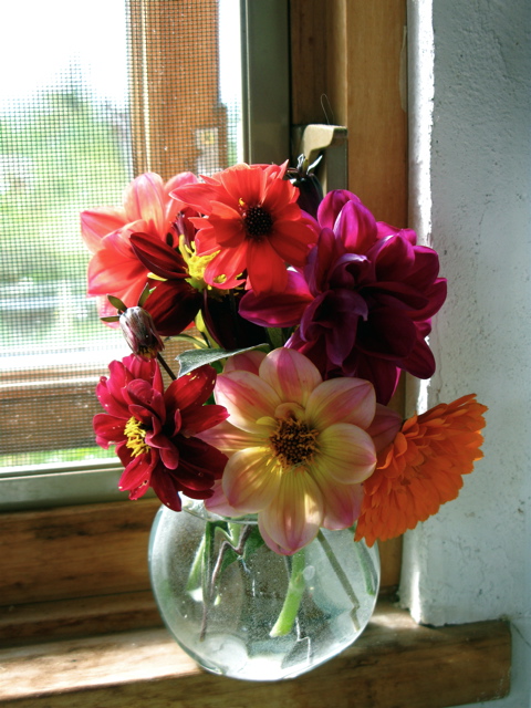 Dahlia and Calendula bouquet, last summer on my kitchen windowsill