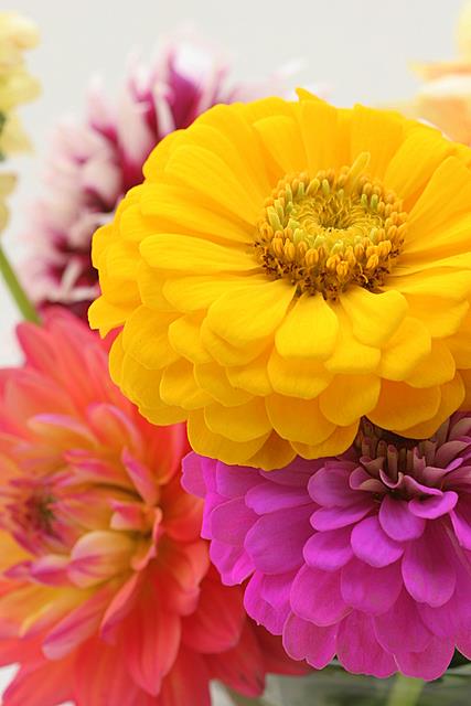 Climbing flowers, such as sweet peas, can be grown up a vegetable garden fence. Sunflowers, cleome, and other tall beauties can also be set against a shed wall or other garden boundary. Some lower growing flowers, including French marigold and dwarf dahlias, make good edging plants for mounded or raised beds. Of course if you have more space, an entire flower garden comprised of multiple beds can become an endless source of blossoms for summertime bouquets to give or keep. If you have pets or small children, always be sure that the flowers planted in vegetable plots are non-poisonous.