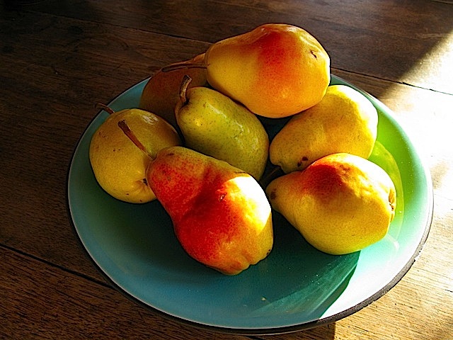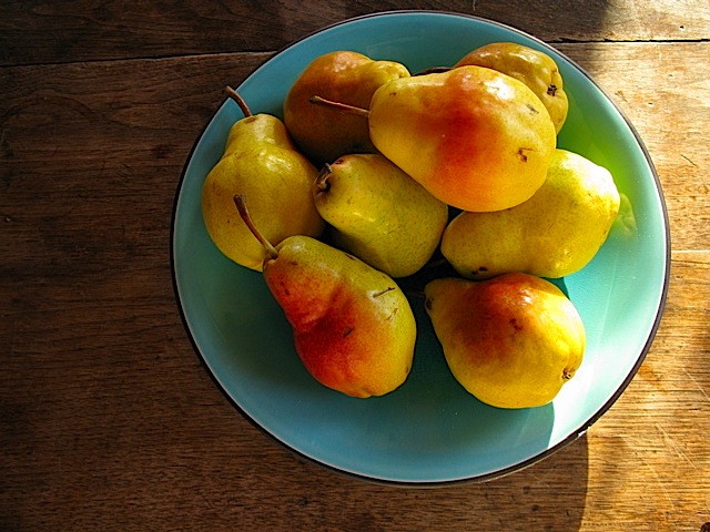 Bartlett pears look so beautiful on my table, it is almost like having Cezanne to breakfast.