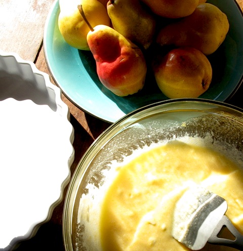 Fruit from the fall harvest is still plentiful at my local orchards and markets, and as you may have noticed, I have been enjoying it ! Although I have been writing a great deal about heirloom apples lately, in truth I have a great weakness for all fall fruit – and I am particularly fond of pears. Simply gazing upon their blushing, golden beauty as they bask in the early morning light on my table, I find them absolutely irresistible. Sometimes I will buy a few pears, intending to poach or bake with them, and then I will eat them all before the weekend. The flesh of this sweetly perfumed fruit has such a beautiful, delicate texture, usually I can not control myself. But this time I bought a dozen Bartlett pears at the market, enough for baking as well as for impulse-pleasure.