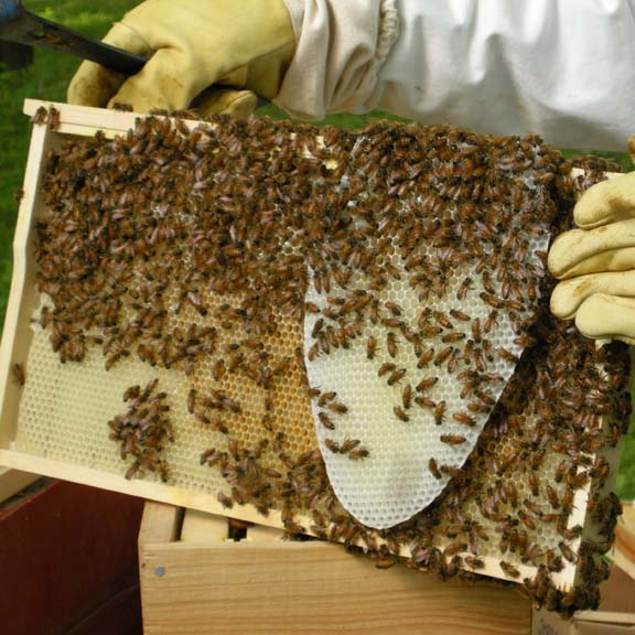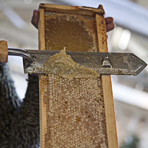Here, Marina demonstrates the uncapping of a frame from a bee hive…