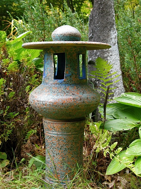 R Foye Lantern~ One of Richard’s very popular stoneware lanterns, here in his garden ~