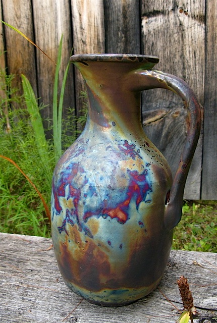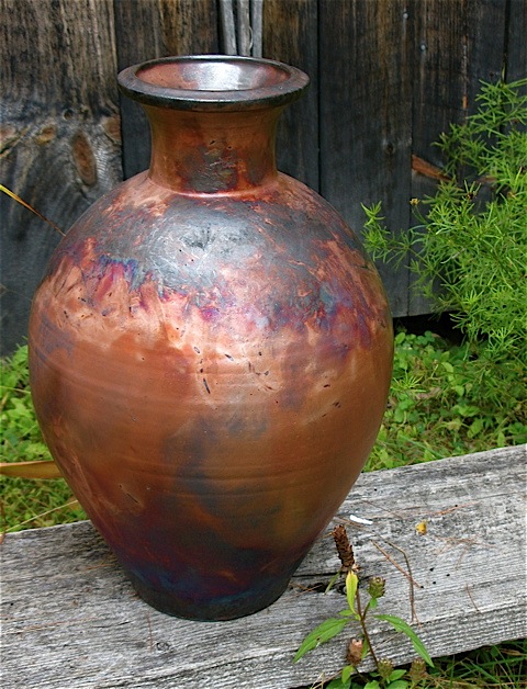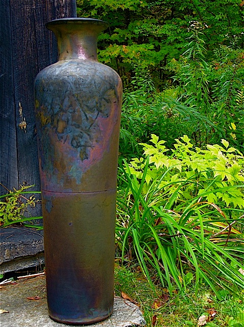 Richard Foye shows his work in galleries and craft exhibitions throughout New England, and at home in Vermont. The Rock River Artists group holds an open studio tour every summer, and to many a gardener’s pleasure, Richard’s studio is conveniently located one door down from Olallie Daylily Gardens. The combination is more than tempting to this nature lover on an autumn day. If you would like to make a visit to Richard’s studio, be sure to call ahead, as he participates in a wide variety of craft shows and artisan exhibits throughout the year. But if you tell him you read about his raku process on The Gardener’s Eden, I am sure he will be more than delighted to give you a tour when he is back at his studio home.