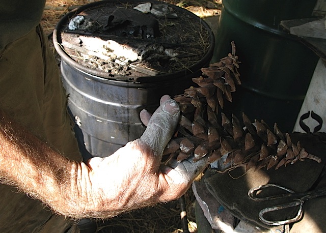 R Foye natural materials, pinecones~ Richard adds natural materials, including pine cones, grass and straw ~