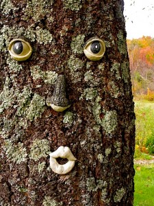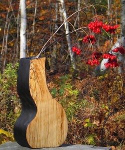 For Michelle Holzapfel, the act of physically creating art always begins with natural materials. A great many of Michelle’s pieces, particularly her vessels, are made from hardwood burls. The burls Michelle uses come from trees native to the Northeastern United States; in fact most are harvested locally in Vermont. Perhaps you have noticed bulging areas on forest tree-trunks, when walking through the woods in autumn and winter, (see second photo below). These bulges, or burls as they are commonly called, are caused by a virus. As a tree develops, these wart-like growths, and the resulting fiber adaptations in the trunk or branch, form unusual patterns – beautiful, swirling lines in the wood. Michelle’s burls are collected, (often discovered by local woodsmen working in the forest), and air dried for years in a storage shed, until inspiration strikes and she brings them into her studio shop to begin  work…