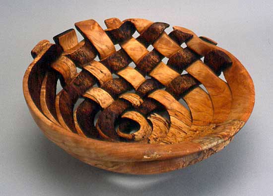 As I walked through Michelle’s workspace, and the Applewoods Studio gallery room, I needed to constantly remind myself – “this is not paper, not fabric, not wicker, not yarn – Â this is wood “. My inexperienced eyes were easily betrayed by the exquisitely manipulated objects set before me. Michelle is a rare artist. She is an accomplished, visionary sculptor with a unique, personal language, and a highly skilled master craftsperson. In today’s art world, this combination is near extinct. The time, discipline and dedication required to reach Michelle Holzapfel’s level of technical mastery is uncommon – and breathtaking to encounter. More than thirty years of self guided study and studio experience has given Michelle the skill and versatility to express her artistic vision in pieces that are both technically remarkable and freely, often playfully, executed…