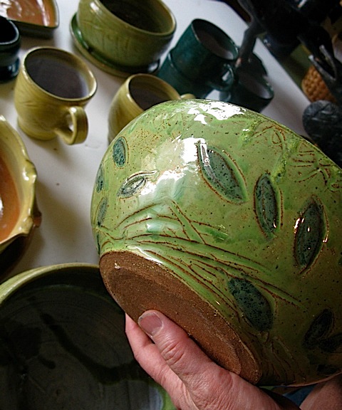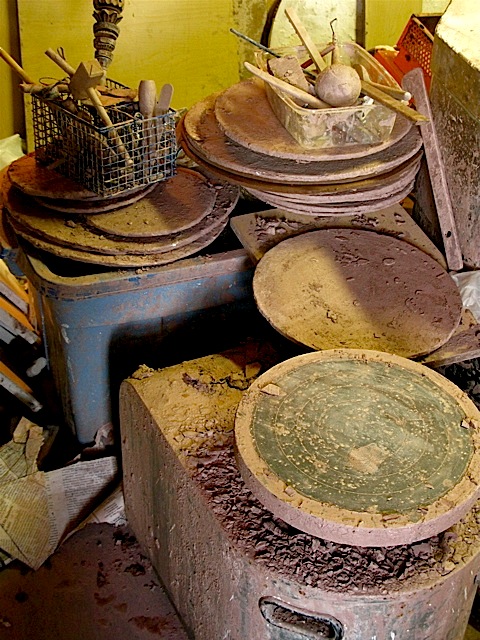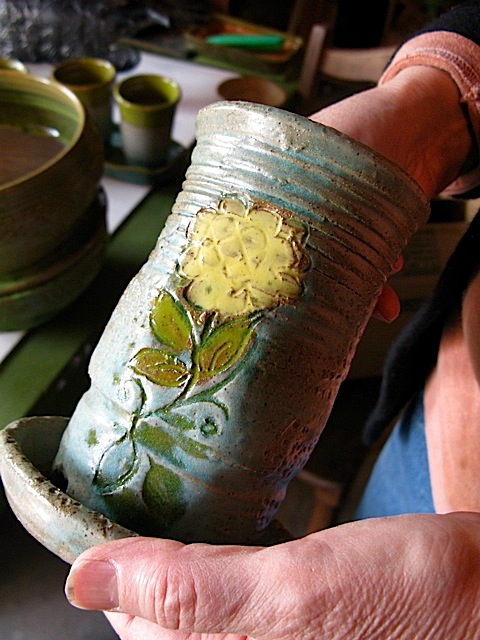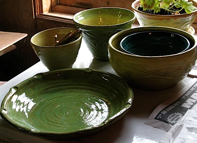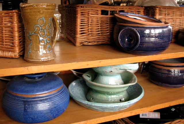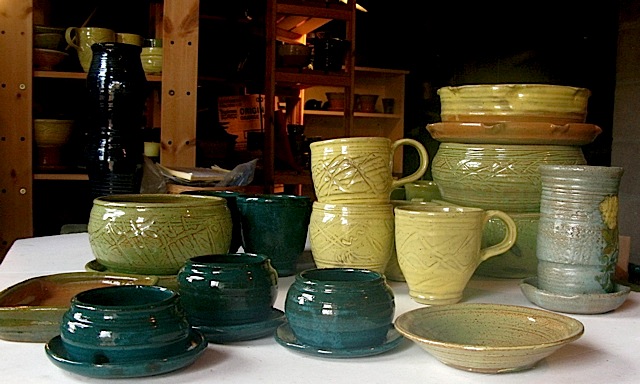 Some of the beautiful flowerpots, plates, mugs and dishes in Virginia Wyoming’s studio…