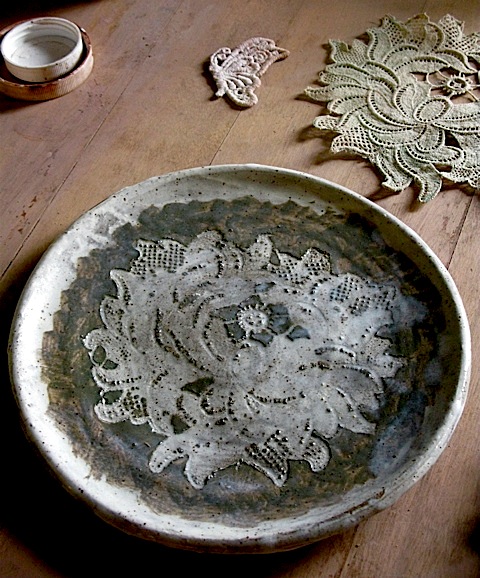 Virginia’s floral lace experiments on her plates – I love these, (click for closer view)…
