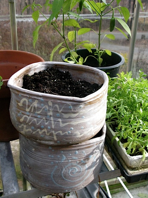 A trio of lovely pots in a tray, (photo by VW), available at Virginia’s Etsy shop…