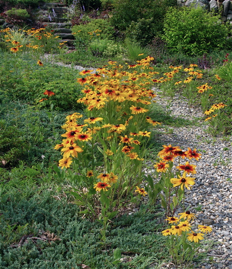 ~ Rudbeckia hirta ‘Becky mixed’ at the edge of the walkway with lysimachia clethroides~