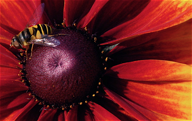 ~ A bee visits Rudbeckia hirta “Becky mixed” in the perennial garden ~