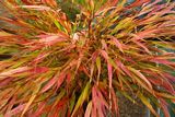 The summer color of Hakonechloa macra ‘Nicolas’,above, intensifies further in autumn