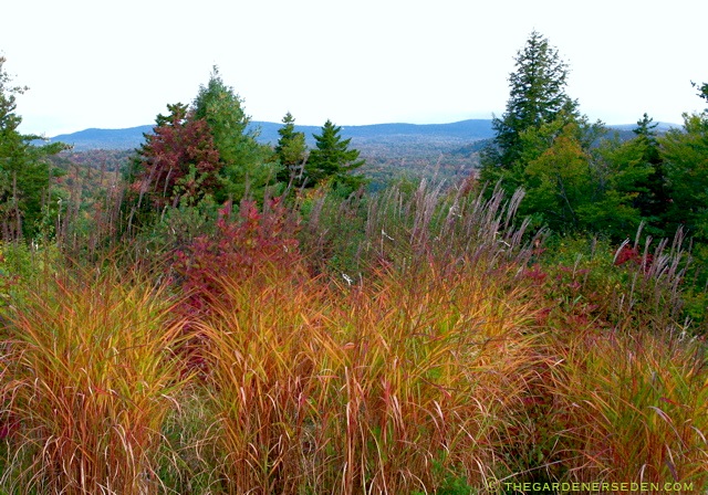 Unless you are a more experienced gardener, companion planting for autumn interest can be a bit difficult. How can you predict color-shifts and texture changes? Nursery tags are often stingy with clues. A good encyclopedia is useful for learning about ornamental grasses and their seasonal changes. And if you know the name of a cultivar, you can easily research information on a web-site such as Dave’s Garden. But for the true ornamental grass aficionado, Rick Darke’s The Color Encyclopedia of Ornamental Grasses (see library) is a great asset. This book will help you to identify more unusual cultivars of sedge, rush, restios, cat-tails and bamboo as well as the gorgeous grasses native to North America and beyond.