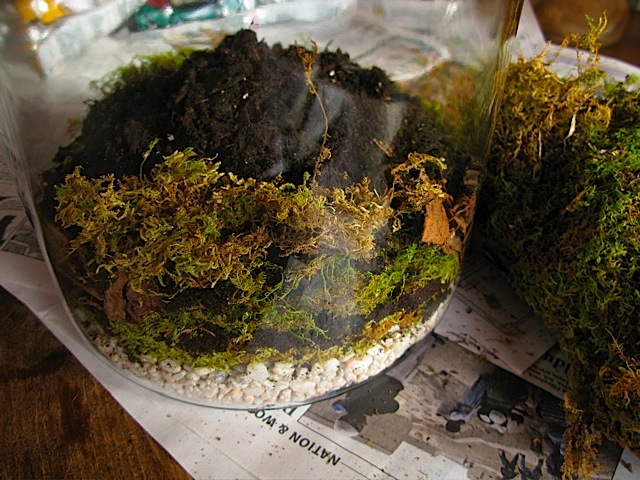 I made my first terrarium just 2 weeks ago, just in time to collect the moss and partridgeberry before it was all covered with snow.