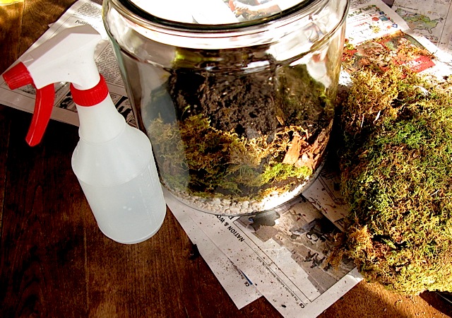 I made mine in a little gold fish bowl, misted it and covered it with saran wrap. Then a little prayer that it will continue to live.