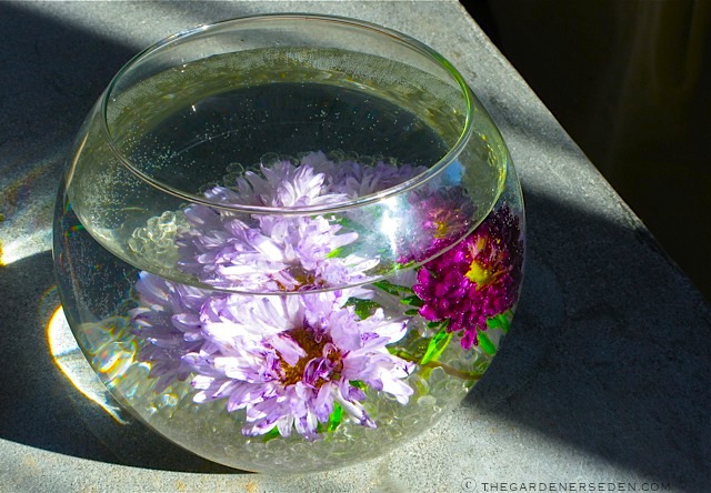 Annual Flowers, annuals, Autumn Color in the Garden, Bowls, Cutting Garden, Flower arrangements, Fresh Cut Flowers, Reflections, Vases, Water Bowl