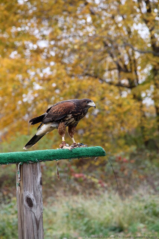 Over the past few years, as my interest in designing gardens with native plants and creating naturalized landscapes has expanded to include a passion for pollinators, wildlife and habitat preservation, I have become more and more curious about birds of prey. I grew up with an avid-outdoorsman father, who sparked my interest in the natural world and my respect for wildlife at an early age. Wanting to give back some of the joy he’s shared throughout the years, I purchased my dad a gift certificate for an introductory session at The New England Falconry in Hadley, Massachusetts. Yesterday, we were lucky enough to spend the morning with Master Falconer, Chris Davis and his amazing Harris Hawks.