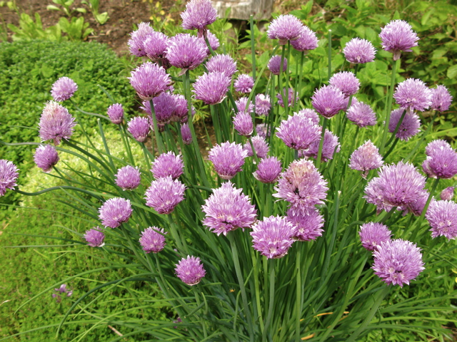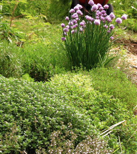 Chives and thyme in the potager