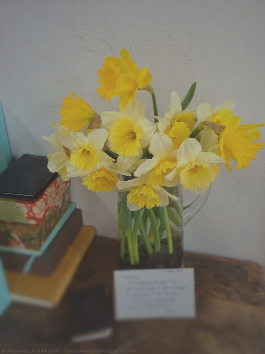 And on My Studio Desk Today: First Garden Daffodil Bouquet of the Season