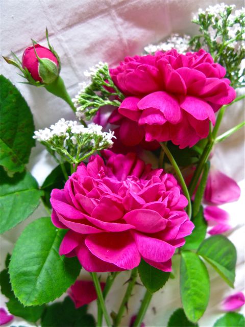 Two of the herbal flowers I’ve chosen for beneath my pillow tonight: Valeriana officinalis and Rosa de Rescht â“’ 2010 Michaela at TGE
