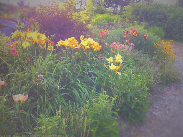 Late Day Light on the Golden Daylilies Along the Drive: Though Hemerocallis are Often Shunned as ‘Common’, I Love their Long, Cheerful Show and Indestructible Ease. Many of Mine are from Olallie Daylily Gardens in South Newfane, Vermont.