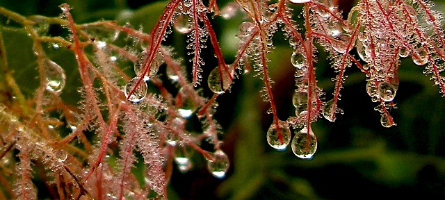 The plant world is also decked out in some textural attire right now. Puffy, fuzzy inflorescences in the garden are all aglow in mauve, taupe and violet. These seductive, smokey hues and intricate details really shine in the early light of day – sparkling and shimmering with morning dew. On damp, rainy mornings I notice the delicate flora are all wearing drops of water like brilliant, crystal-encrusted gowns…