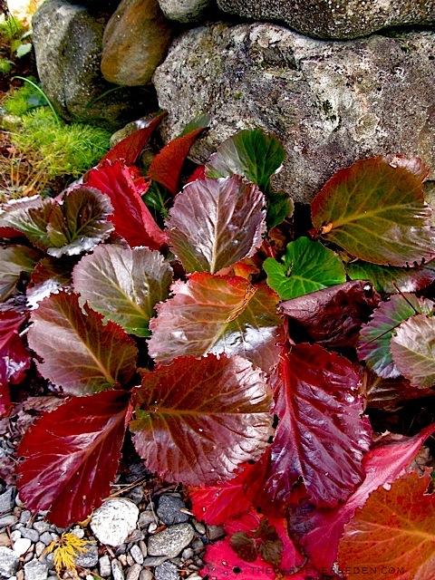 Bergenia ‘Bressingham Ruby’ at the Secret Garden entryway in late autumn â“’ Michaela at TGE