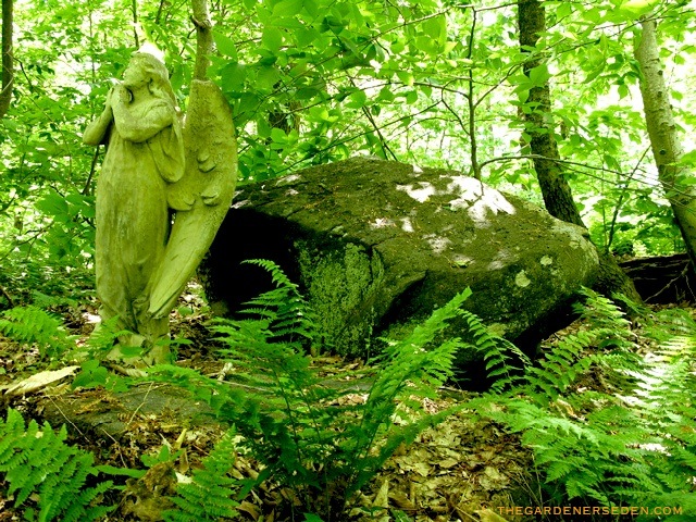 Welcome to my Secret Garden. Located on a small clearing, surrounded by 45 acres of native forest, my property is a windy, ledgy site in the foothills of the Green Mountains (altitude near 2,000′, USDA zone 4/5) in Southern Vermont. My studio, home and gardens are private, and are not open to the public.
