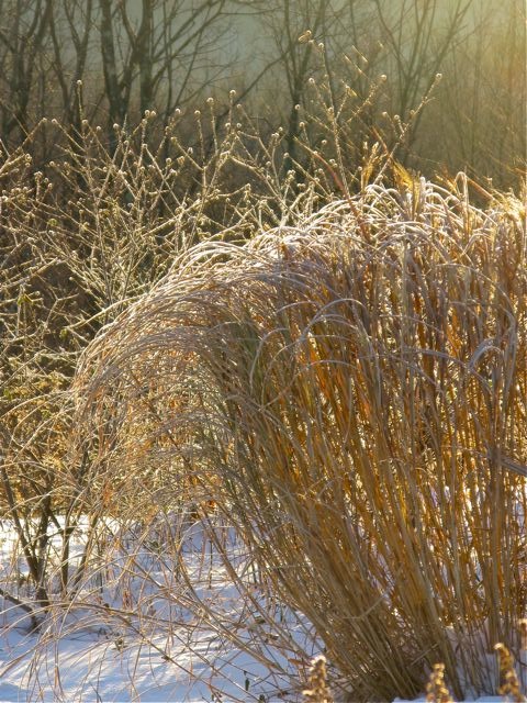 Miscanthus and Viburnum in Winter â“’ Michaela at TGEMiscanthus sinensis and Viburnum with frost and snow in early winter â“’ Michaela at TGE