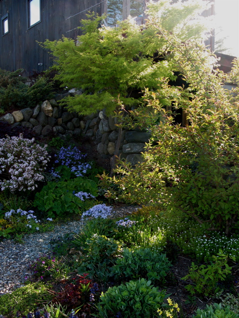 Secret Garden entryway in Spring â“’ Michaela at TGEAt the Secret Garden entry, Acer palmatum x dissectum, ‘Seiryu’, surrounded by spring flowering bulbs, emerging perennials, and shrubs in May â“’ Michaela at TGE