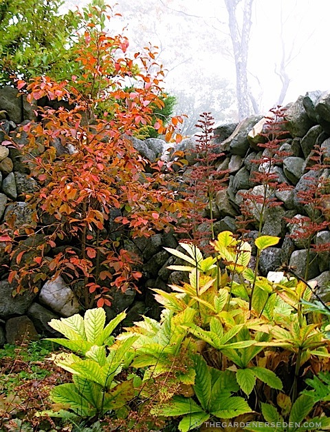 The Secret Garden room in mid October  ⓒ Michaela at TGE  (Plantings include Stewartia pseudocamilla and Rodgersia aesculifolia)