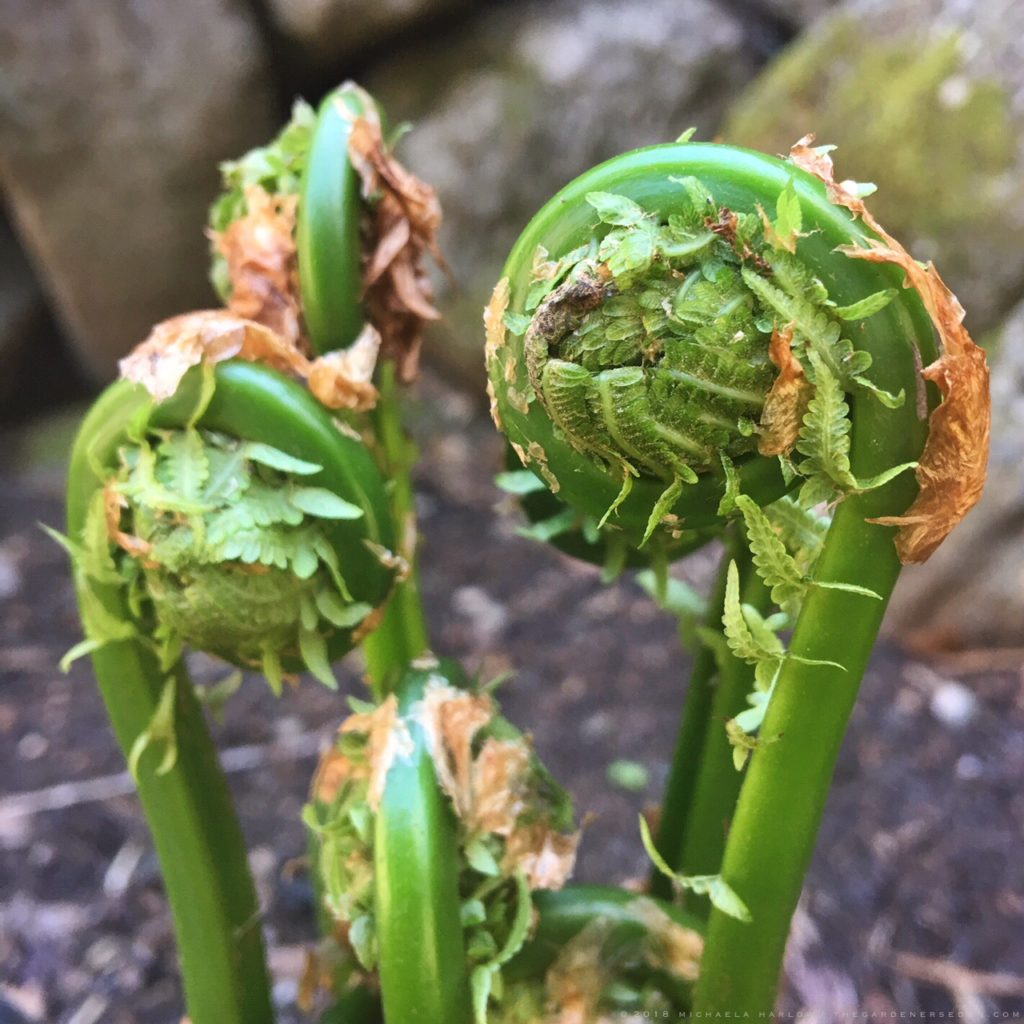 It’s Fiddlehead Season! Beautiful in the woodland garden and the dinner plate: Ostrich Fern (Matteuccia struthiopteris)Â
