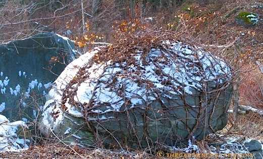 Climbing Hydrangea (H. petiolaris) Adds Texture and Color to A Grouping of Boulders, and Provides Nooks and Crannies for a Dusting of Fresh Snow…