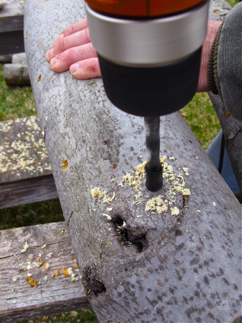 When set, the top of each plug is flush with the surface of the log, ready to be coated with a warm wax seal …