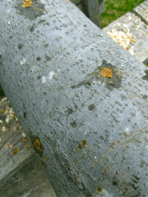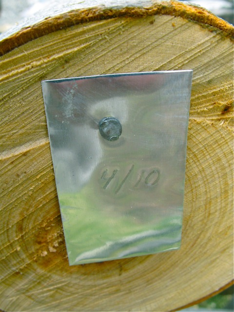 As a final step, each log is tagged and dated. Here, a photograph of tags placed on the second set of logs, inoculated this spring..