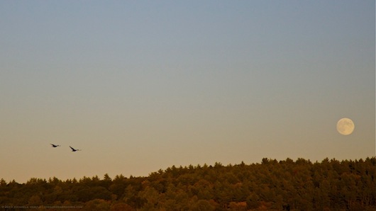 A Pair of Canada Geese Greet the Full, Harvest Moon