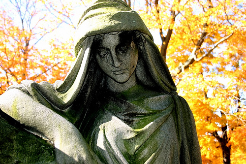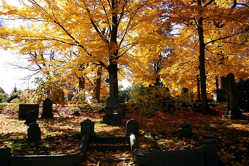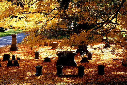 In celebration of All Hallows’ Eve, The Gardener’s Eden proudly presents a ghostly photographic tour of the Forest Hills Cemetery through the eyes of artist Liz Kelleher. No Halloween ever feels complete without a twilight stroll through a shadowy, mysterious graveyard. And what better haunt than a lonely old cemetery in the heart of New England?