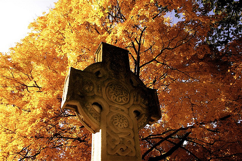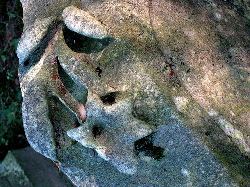 So now…Â Take Liz’s hand as she drifts through the empty garden. Brush close against the cold tombs, like the ivy and hydrangea, which caress the solemn angels as they silently guard the spirits within the iron gate. What souls watch as we make our way past the towering celtic crosses, tiny headstones and lost lambs? Can you hear the long ago voices in the whispering wind and the callous croaking of the crow? Watch as ancient trees bow down; hovering above the chilly, stone-mourners as their shadows elongate; reaching toward the grand arch; grasping desperately at the last rays of light…