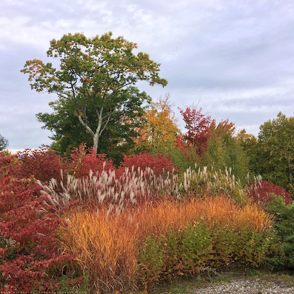 Viburnum trilobum & V. plicatum with Miscanthus purpurascens & Rudbeckia subtomentosa ‘Henry Eilers’Â