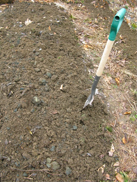It’s always important to test your soil’s pH and nutrient levels in spring, and again in fall. If you need some information about testing your soil, click back here to my post on the subject from last year. The best time to amend garden soil is in the fall, but if you need to adjust your pH, get on that right away, as it takes awhile for the soil’s natural chemistry to adjust! Adding compost, and perhaps green sand, (a natural soil conditioner), is the first thing you will want to do when your soil is friable. Deep, loose soil is key to growing good produce – particularly root crops. Using a garden fork, work compost into the top layer of soil, loosening the layers with a rocking motion as you go. When your soil is thoroughly dry, turn it again  – ideally with both a shovel and a fork-  removing any rocks and/or weeds. When you have prepared the soil to your satisfaction, rake it over smoothly and let it rest and warm….