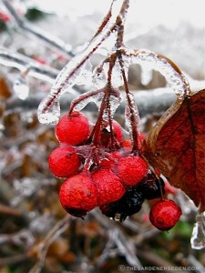 My old friends Jack and Sugar were here again last night with their chilly and fabulously chic entourage. As usual, they danced and partied ’til dawn. From the look of things in the garden this morning —dozens of popped corks and champagne sprayed everywhere— they really outdid themselves. Countless scantily-clad ice-nymphs must have been in attendance; traipsing carelessly in and out of the flower beds and dropping their sequined underpinnings. When the sun rose, fashionable bits and pieces of attire could be found here and there —crystal-studded trinkets, sparkly shawls and brilliant baubles— flung far and wide. Shocked? Never. This happens every year {you do remember last year’s inaugural evening of excess, don’t you?}. Of course, the exact date and time of this exclusive nighttime debauchery always remains somewhat amorphous —just as the horti-couture fashions change from year to year — and those cold-hearted party-goers always seem to misplace my invitation…