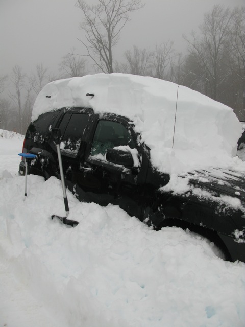 The past few days have been… adventure filled. I will write some more about it this weekend when I will be, (hopefully), snuggled up by the fire with Oli, (that would be my yellow lab), and Woo (that would be my fat cat). But right now I have pressing things to attend to. I have a stuck plow-truck and a greasy luge-run of a 1,500′ driveway to clear, (and boy that switch-back is a killer, believe me). So, if you don’t hear from me for a little while, it’s likely because the power is out, (I connect to you via satellite), or I am out clearing snow and/or ice.