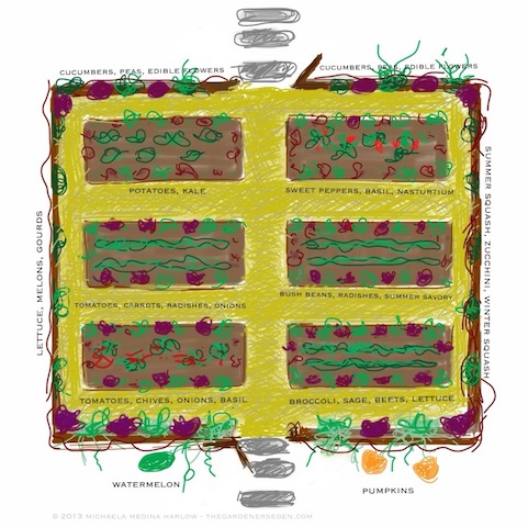 Sample Potager Layout with Cool & Warm Season Companion Plants