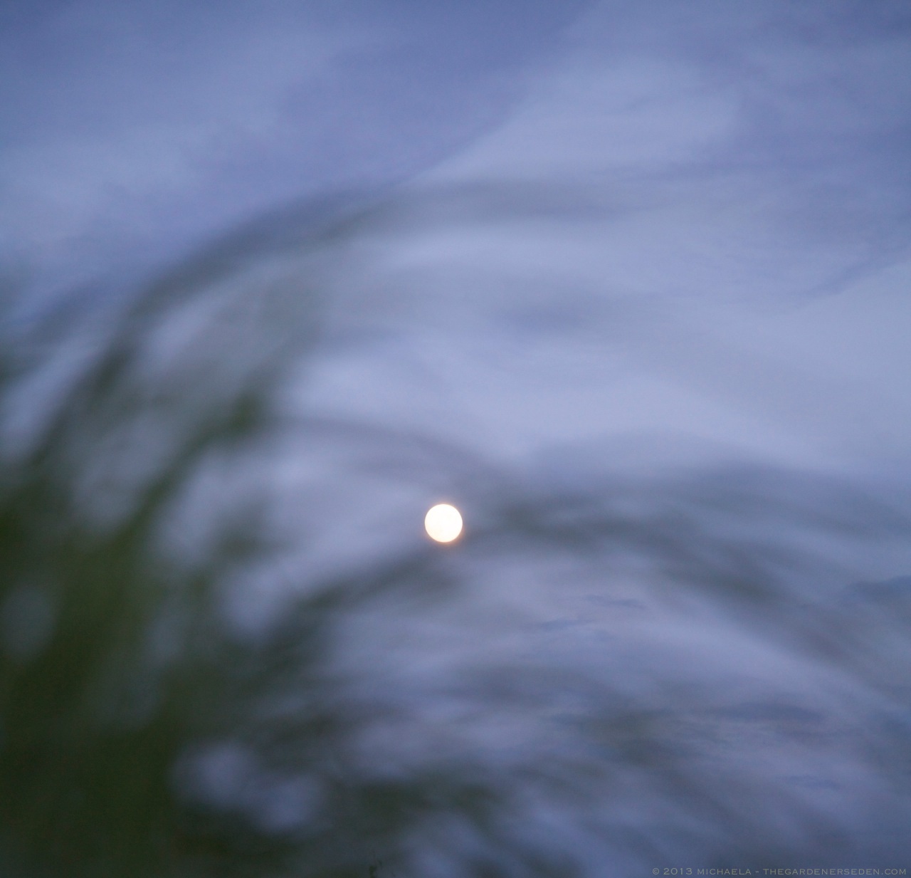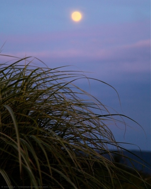 August's Full, Green Corn Moon - michaela medina harlow - thegardenerseden.com August’s Green Corn Moon, Through Swaying Blades of Maiden Grass (Miscanthus sinensis ‘Variegatus’)