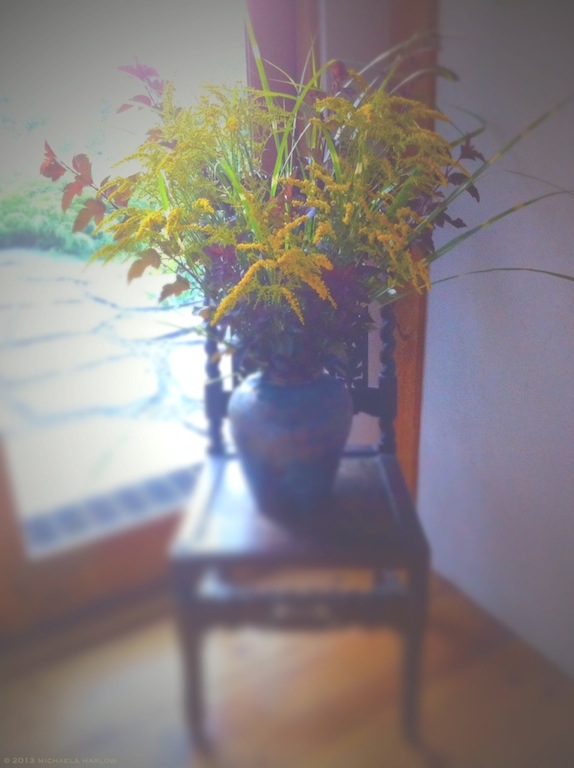 Physocarpus opulifolius 'Diablo', Miscanthus and Solidago - michaela medina harlow - thegardenerseden.comThe Honey-Hued Beauty of Goldenrod Lights up Ninebark’s Maroon Foliage an Old Vase: Solidago, Physocarpus opulifolius ‘Diablo’ and Miscanthus sinensis ‘Strictus’. Goldenrod is Often Erroneously Blamed for Allergies. Ragweed (Similar Bloom Time and Color) is the Wind-Pollinated Culprit.