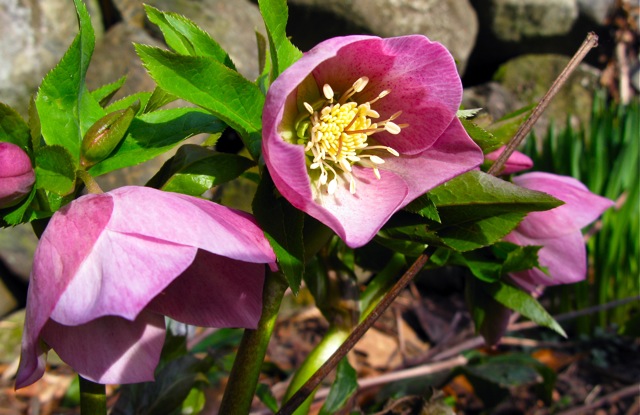 This isn’t a bold or obvious flower, so often it can take awhile before a gardener discovers the subtle charms Lady Hellebore. This plant seems to demand a more discerning eye; a mature sensibility, if you will. However, once introduced to Helleborus, many a plant collector has developed a full-blown obsession with the genus. Easy to cultivate given the proper conditions, the Lenten Rose prefers dappled shade and  moist -but never water-logged- humus-rich, fertile soil. Special points? Deer and rodent resistance certainly top the list of her fine qualities, and she also tends to be long-lived, producing beautiful colonies beneath trees and shrubs. Although slugs and aphids can cause a bit of damage, with vigilance on the part of the gardener, these troubles are easily controlled. And although Helleborus x hybridus is sometimes listed as hardy from USDA zone 6 – 9, I have had no trouble overwintering this species here in the protected Secret Garden of my zone 4/5 garden…