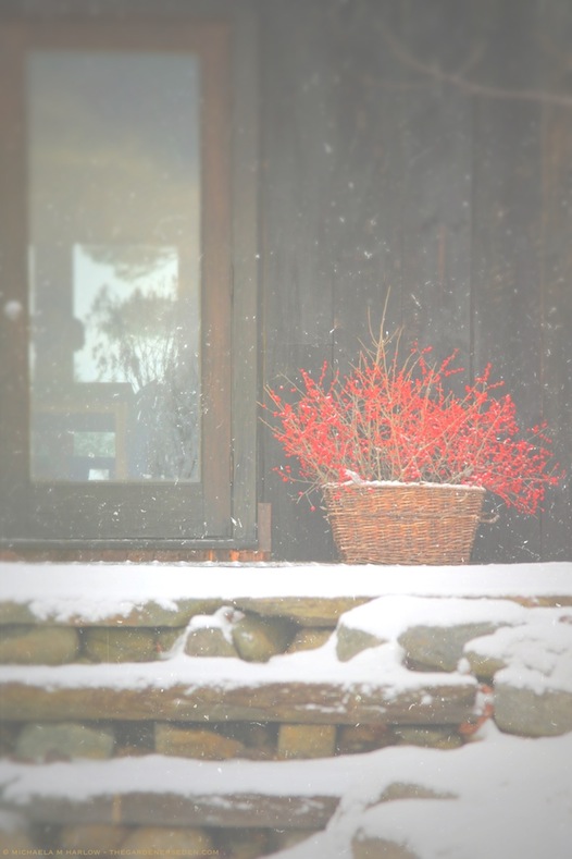 My garden installation work winding down, I’m settling back into the studio as the snow begins to fly. As always, I seek inspiration in the natural landscape; drawing upon the beauty of stark lines and late autumn hues, low light and softening snow squalls. On long walks through the garden, forest and surrounding landscape, I gather as many winterberry branches, hemlock boughs, pinecones and tufts of maiden grass as my arms can carry.