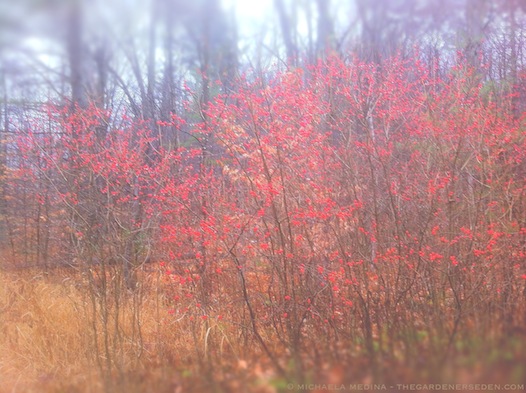 Bunches and Bunches of Bright Red Winterberries (Ilex verticillata) Brighten a Wintry Autumn Day